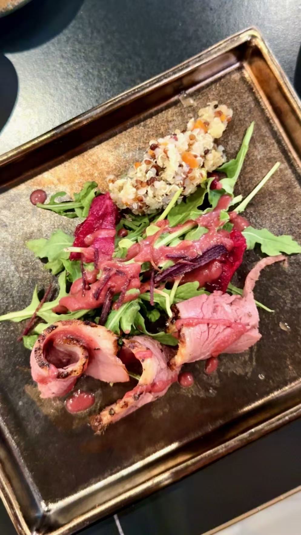 Jalapeno tequila, violette, lemon foam, beet juice, bitters art (contains egg white)